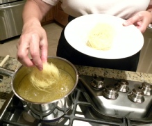 Place the broth in a pot and bring to a boil. When the broth is at a fast boil drop the pasta.