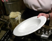 Cook until the pasta is “al dente” (firm but not too soft or overcooked.) The angel hair will cook fast. Be careful not to overcook.