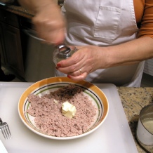 Add the mortadella and prosciutto to the processor. Run the blade until all the meat is very finely ground. Transfer the ground meat to a shallow bowl. Add the egg, butter ....