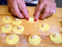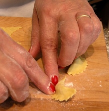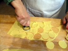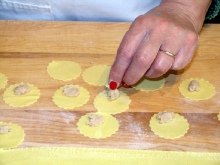 Prepare pasta dough using my pasta dough recipe. Make the dough very soft, using just enough flour to avoid the dough sticking to the hands while working. Flatten the dough with the rolling pin or machine.