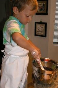 Melt the chocolate in a double boiler. Cool the melted chocolate to room temperature.