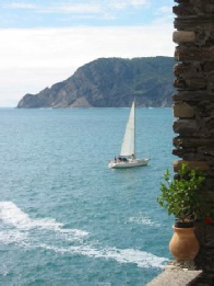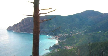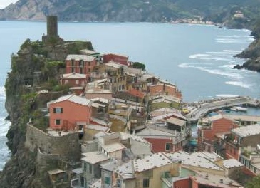 “On the coast of the province of La Spezia, between Levanto and Portovenere, lie five villages which are all but cut off from the rest of the world. They are accessible only by boat (or on foot, if you are a mountain climber). The Cinque Terre (the Five Lands), Monterosso, Vernazza, Corniglia, Manarola, and Riomaggiore, cling to steep cliffs dropping perpendicularly to the sea. About all you see is bare rock. It would be hard to imagine terrain less propitious to growing anything at all; yet, this is where the best wine of Liguria comes from. The wall of rock which cuts the five villages off from civilization protect the vines from north winds and provides a sun drenched exposure to the south.”