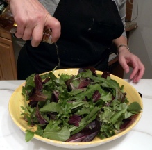 A simple “Green Salad” is prepared with the famous "Italian dressing," which is nothing