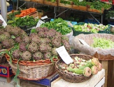 Whole and Cleaned Artichokes, on a stand of Campo de’ Fiori farmers market, in downtown Rome.