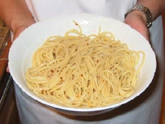 Aio e Oio is the Roman dialectal way of saying garlic and oil. It is generally prepared very spicy, so don’t be shy with the quantity of red pepper.