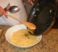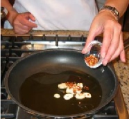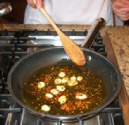 Do not overcook or burn the garlic! Browned garlic is considered a big mistake in Italian cooking. Use fresh hot peppers when available and slice them before adding them to the skillet. If fresh red peppers are unavailable, use whole hot dry red peppers, chopped coarsely, or a generous quantity of hot crushed red pepper.