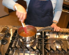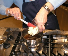 Remove from heat and add the butter. In a bowl whisk the eggs and add the salt and the bourbon.
