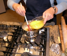 Combine the egg mix to the syrup and let cool to room temperature.
