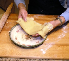 Trim the edges to make them even. Flute the crust pushing with the thumbs against the edge of the pan.