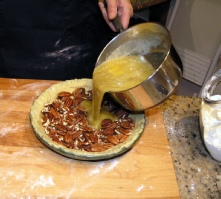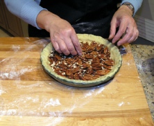 Pour the filling over the pecans. Push the pecans down with a fork so they stay under the filling.