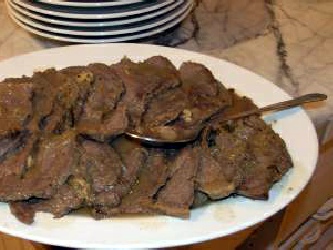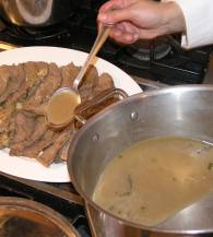 When the meat is lukewarm, slice and serve topped with the warm sauce.