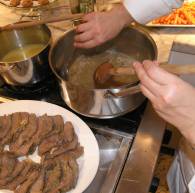 Many flavoring ingredients can be added to the pan to give the final dish a distinctive flavor: wines (either dry or sweet), brandy, herbs, vegetables, and more. In this recipe, the flavor is given by rubbing the meat with French mustard, making an unusual and tasty combination.