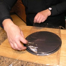 Disassemble the springform pan and place a piece of plastic wrap on the base disk.