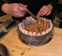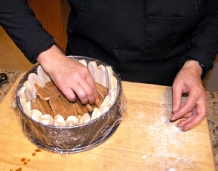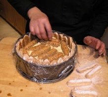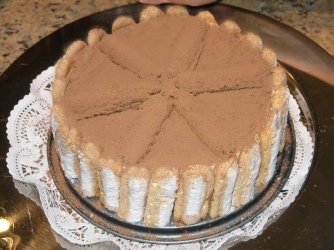 Decorate the surface of the cake with more  dipped ladyfingers. Refrigerate for 3 - 4 hours.