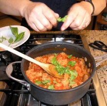 Break the basil (and optional sage) in large pieces and stir into the soup. Cook for about 5 more minutes or until the soup is consistent and not watery.
