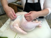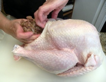 Chicken is normally de-boned before stuffing while turkey instead, because of its