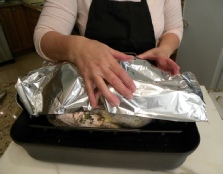 Cover with aluminum foil and place in the oven. Roast for about 2 hours.