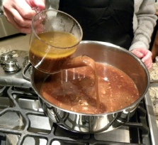 To prepare the gravy: Transfer the cooking liquid to a fat separator. Remove the fat away.