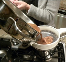 Place the chestnuts in a food processor and reduce to a paste. Put the turkey cooking liquids in a saucepan on medium heat. Add the chestnut paste. When the gravy reaches a slow simmer, add the cornstarch dissolved in few tablespoons water. Cook for few seconds until the gravy thickens.
